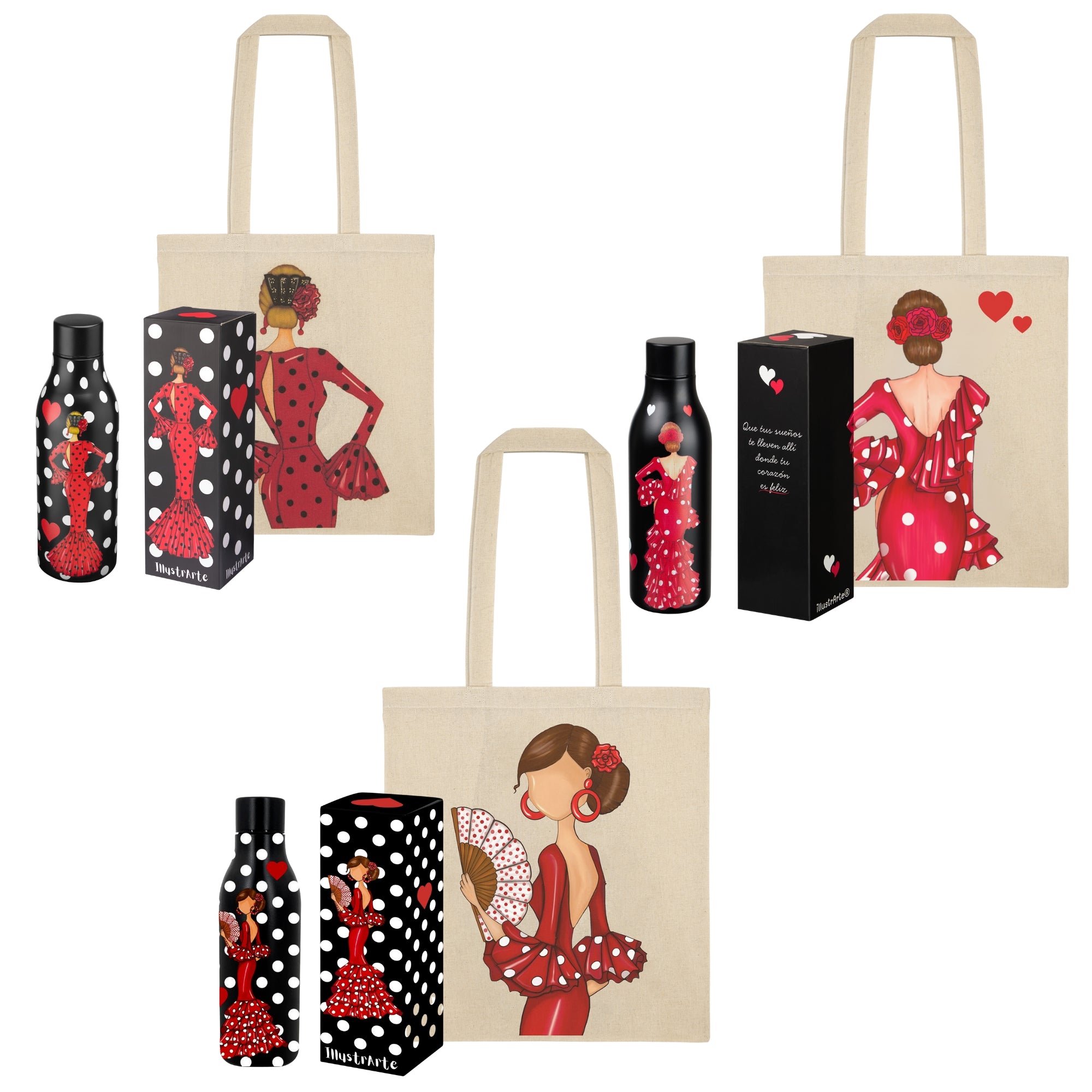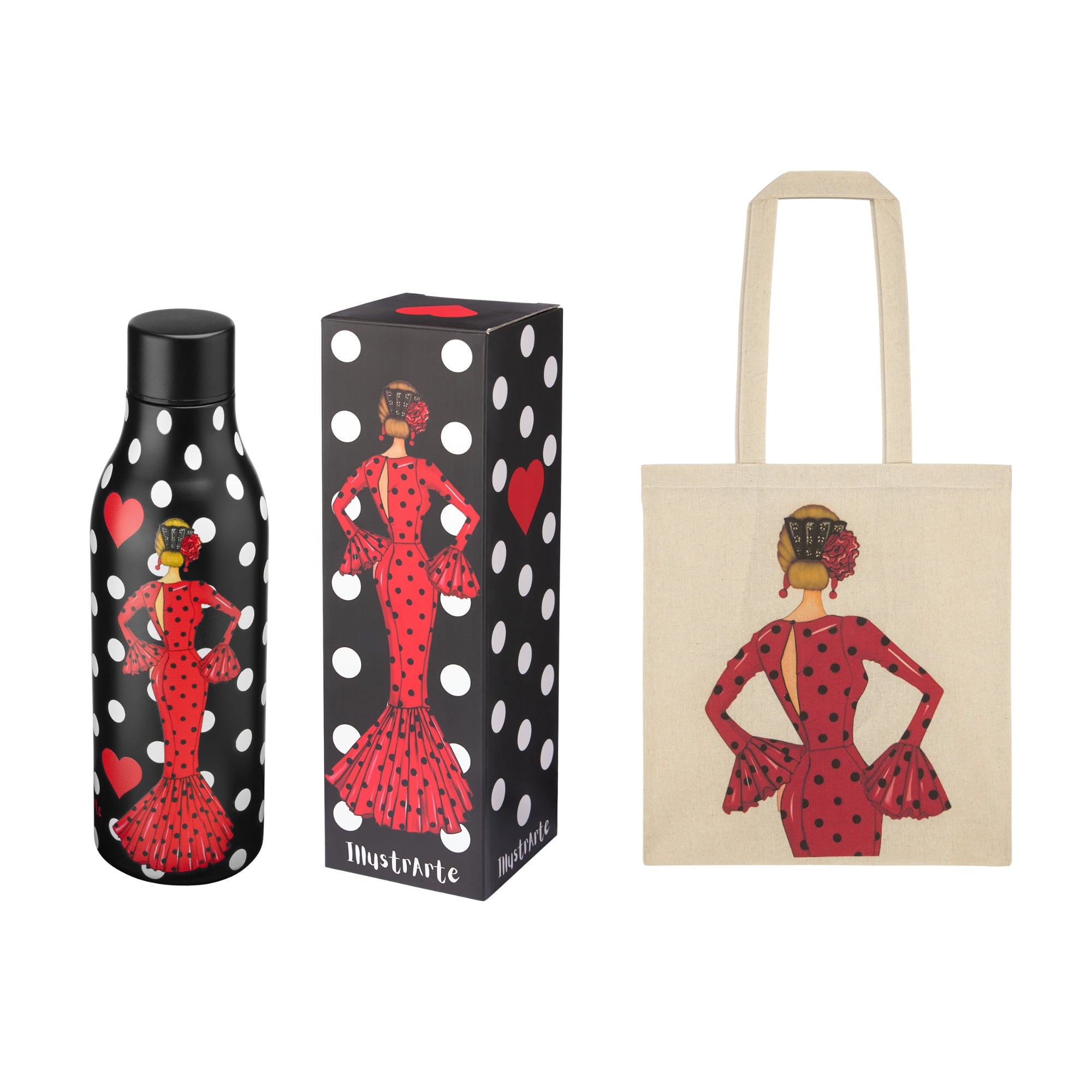 Pack Botella Térmica + Bolsa Tote Cádiz Flamenca | Diseño illustrArte