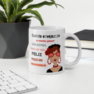 Fabricada con cerámica blanca de alta calidad, esta taza presenta un acabado brillante que realza sus colores y detalles. La taza tiene una capacidad de 11 oz, ideal para disfrutar de tu bebida caliente favorita al amanecer o durante esa pausa revitalizante en la tarde. Su diseño innovador incorpora un agarre en forma de C, que permite un manejo cómodo y seguro. Olvídate de las preocupaciones al beber, ¡ahora puedes disfrutar plenamente cada momento!