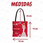 Con su tamaño amplio (43 x 43 cm) y sus asas largas de 60 cm, resulta muy cómoda de llevar al hombro o en la mano. Ideal para el trabajo, la universidad, una tarde de compras, la playa o cualquier plan donde quieras llevar contigo un toque de arte, alegría y salero.