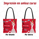 La flamenca Pepa Feliz nos recuerda que la vida se vive mejor con alegría, carácter y un poco de arte. Esta bolsa tote illustrArte, con su fondo rojo vibrante y la elegante flamenca vestida de blanco con lunares rojos, es perfecta para quienes llevan el espíritu flamenco allá donde van.