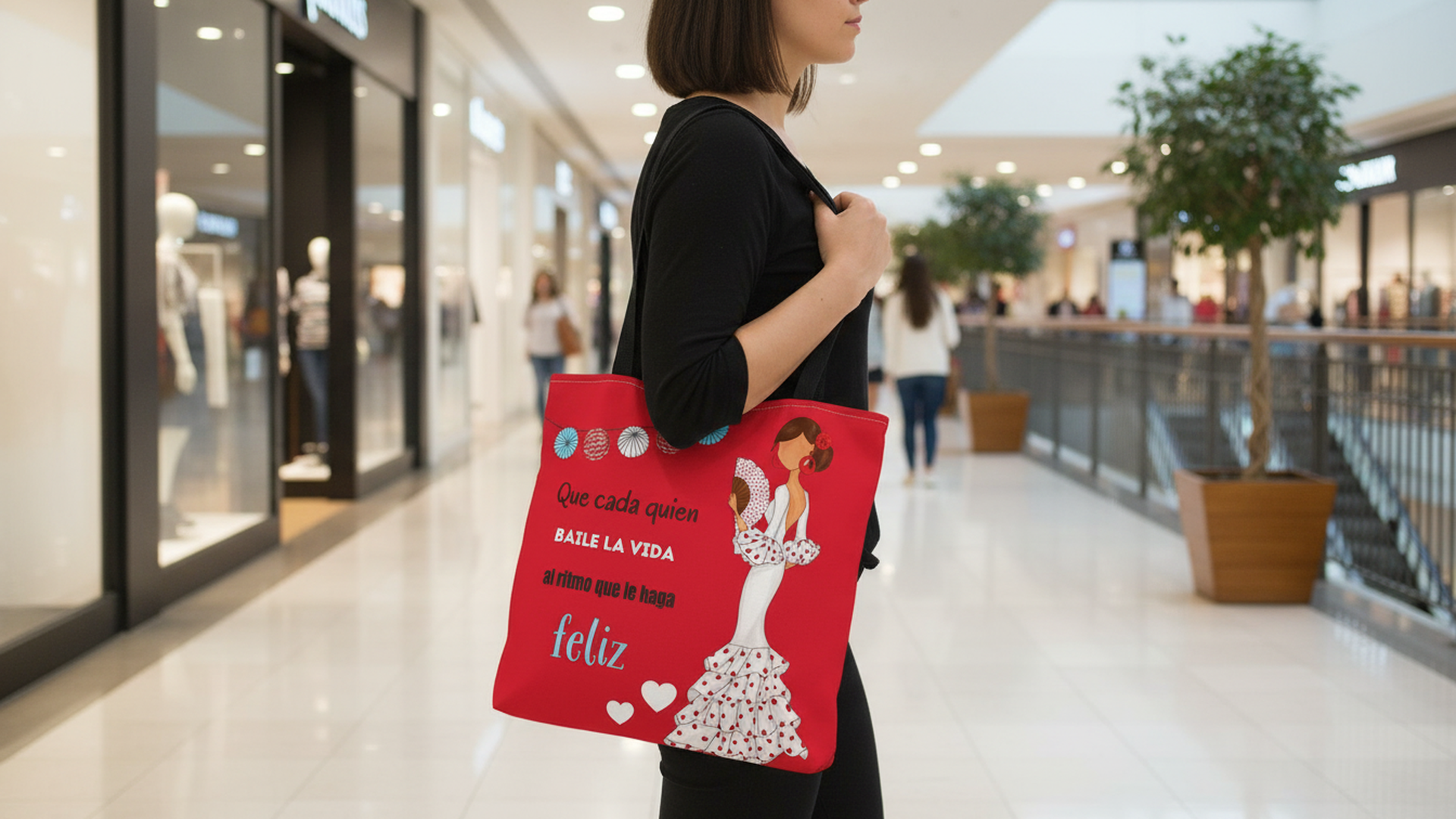 • Diseño a doble cara: Ilustración flamenca Pepa Feliz con frase inspiradora.