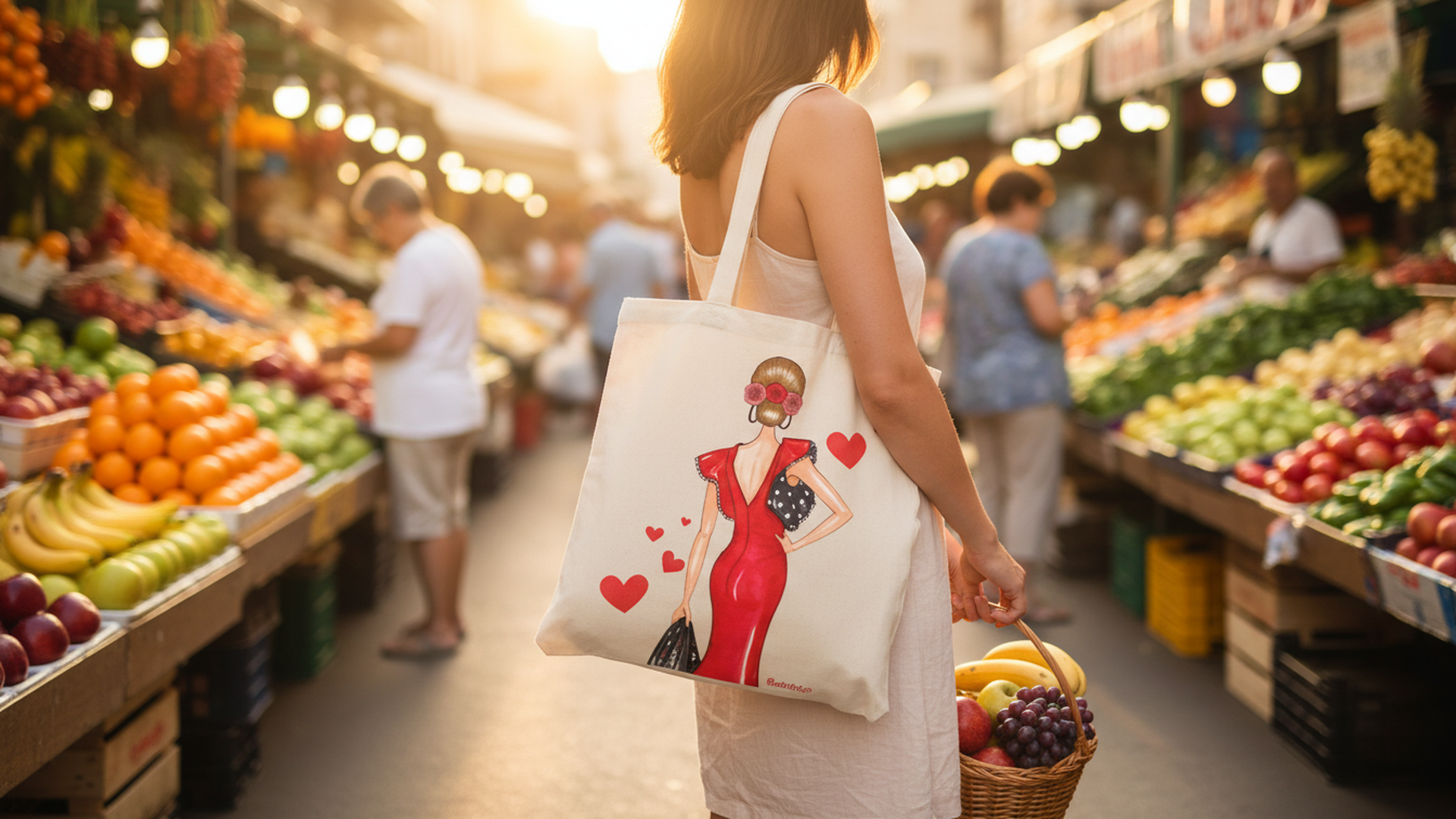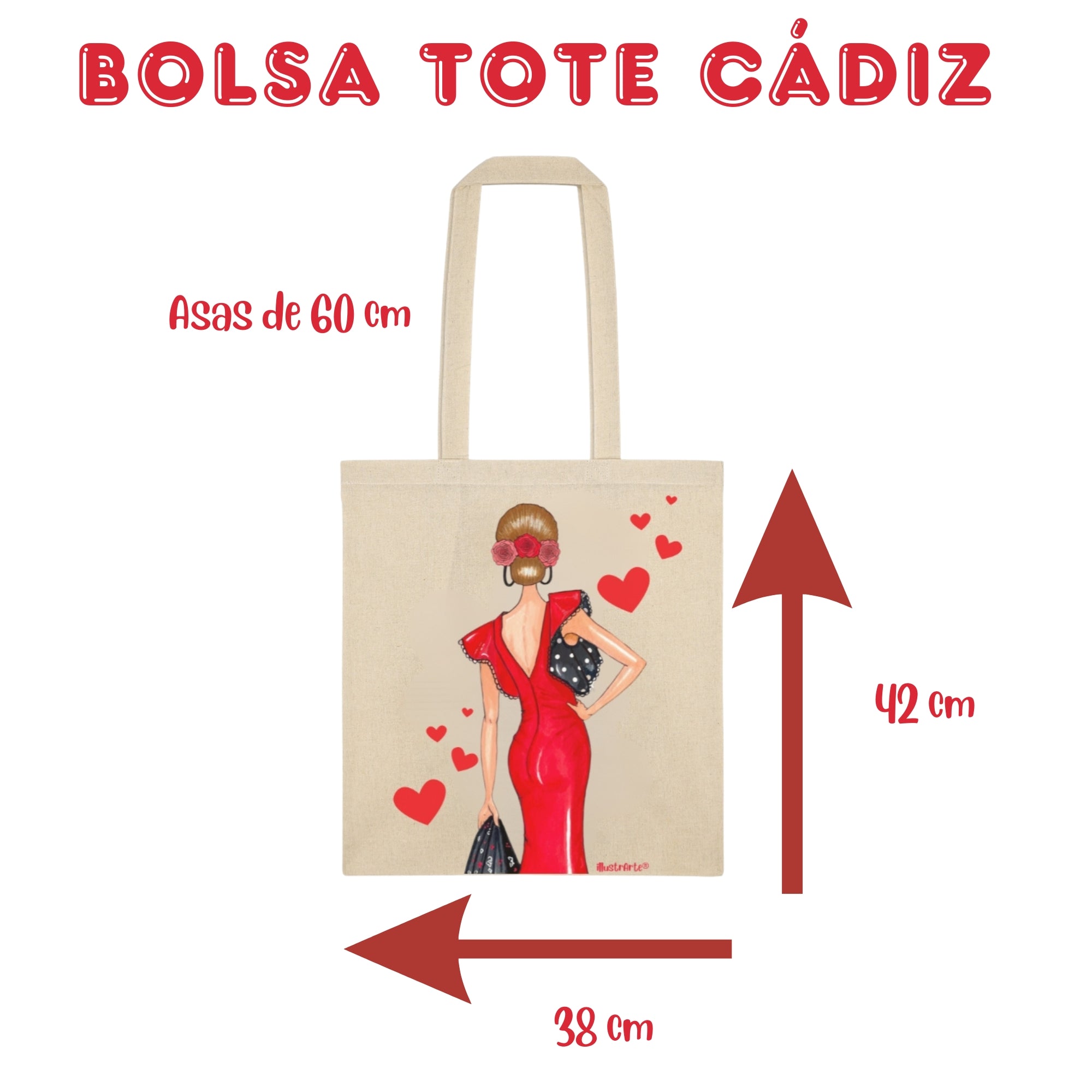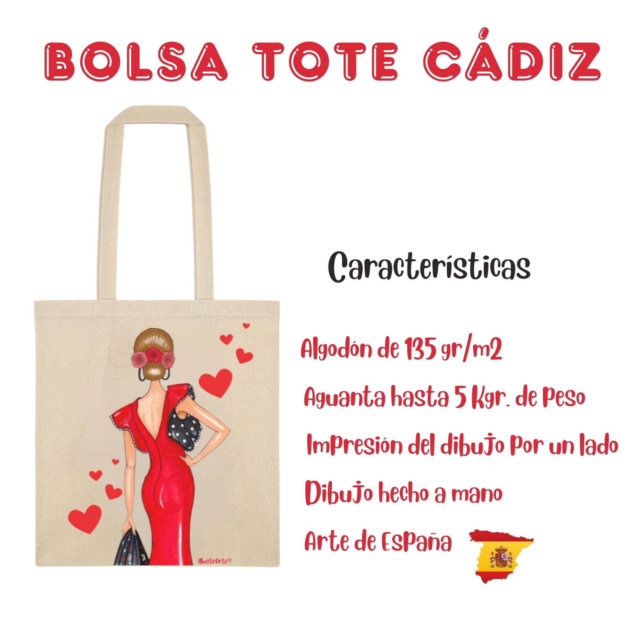 👜 illustrArte Bolsa Tote Cádiz Diseño Flamenca “Macarena” | Algodón 135 g/m² (38 x 42 cm) | Asas Largas de 60 cm | Impresión en un Lado | Bolso Shopper Ligero (Soporta hasta 5 kg)