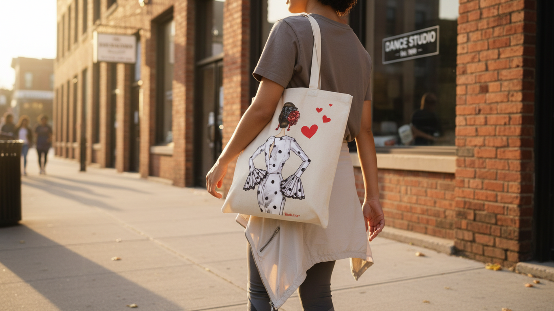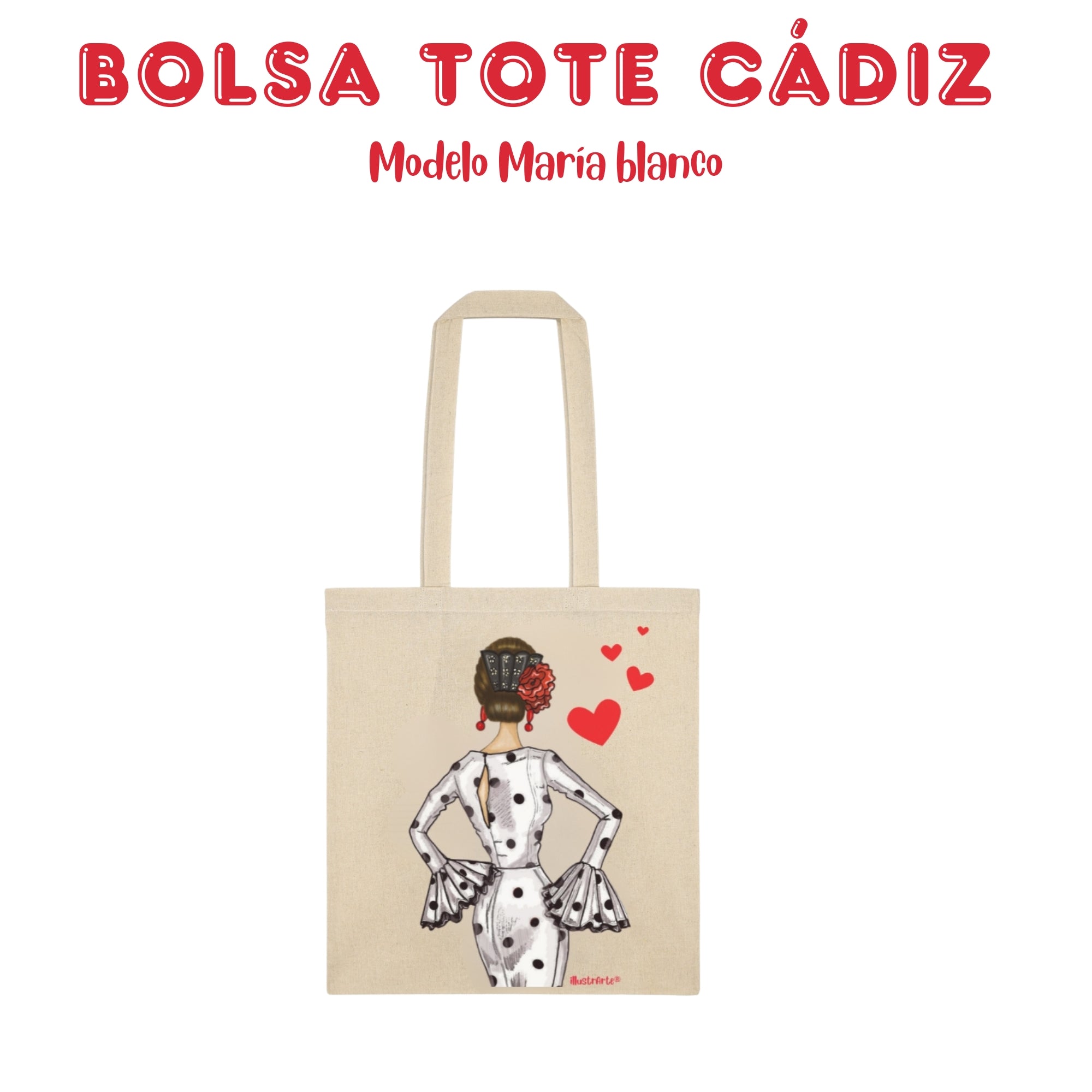 👜 illustrArte Bolsa Tote Cádiz Diseño Flamenca “María Blanco” | Algodón 135 g/m² (38 x 42 cm) | Asas Largas de 60 cm | Impresión en un Lado | Bolso Shopper Ligero (Soporta hasta 5 kg)