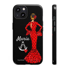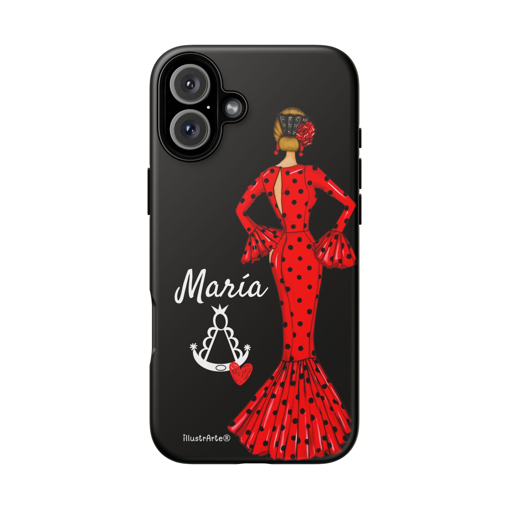 Funda de teléfono personalizable María rojo fondo negro Virgencita – para iPhone, Samsung, Pixel