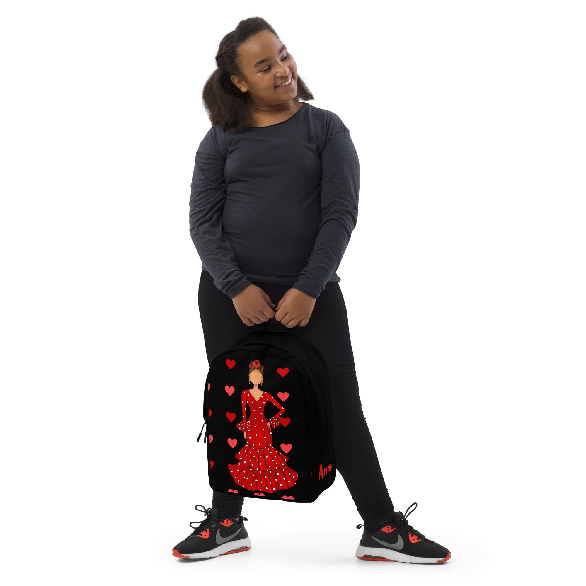 Mochila personalizable - Modelo Ana fondo negro con corazones