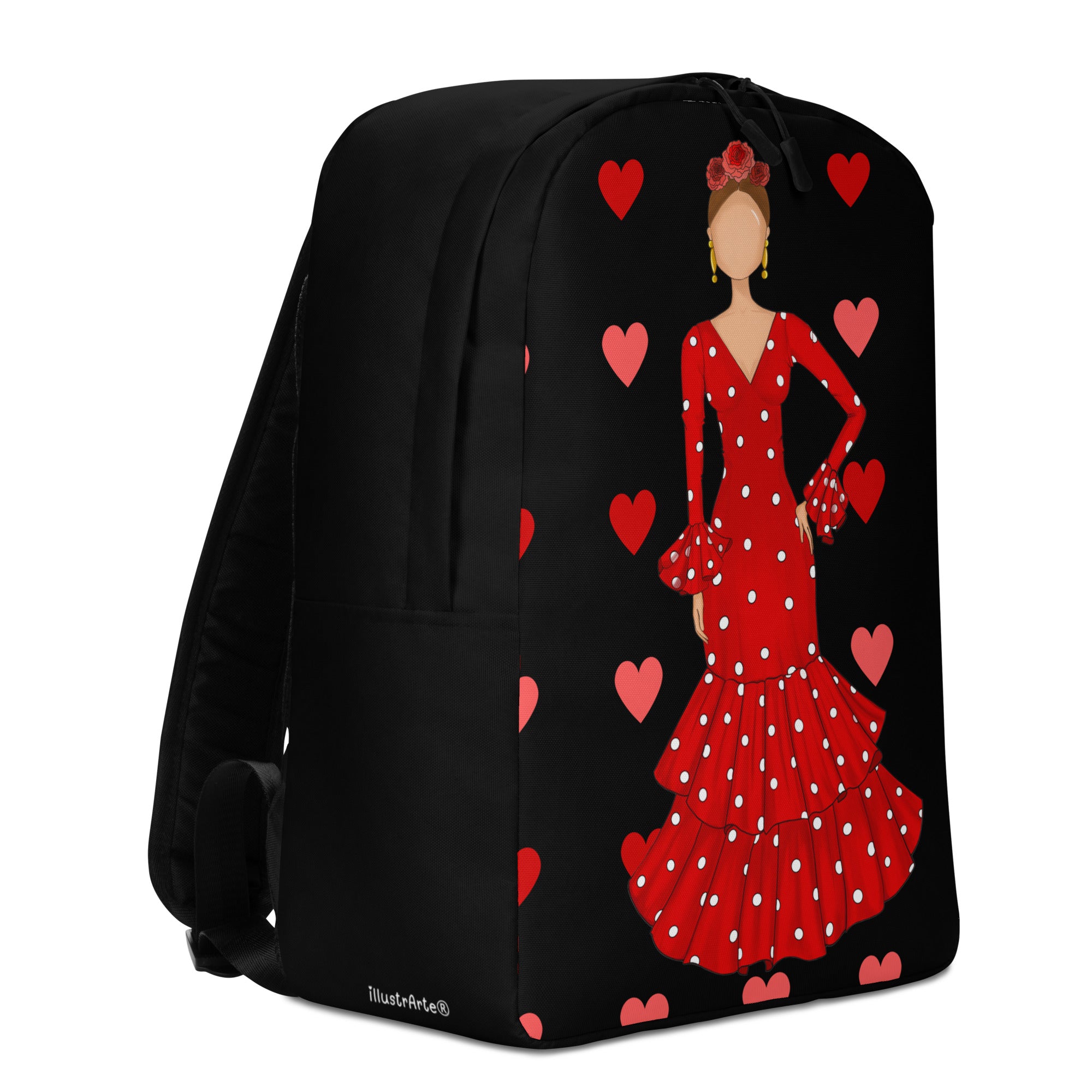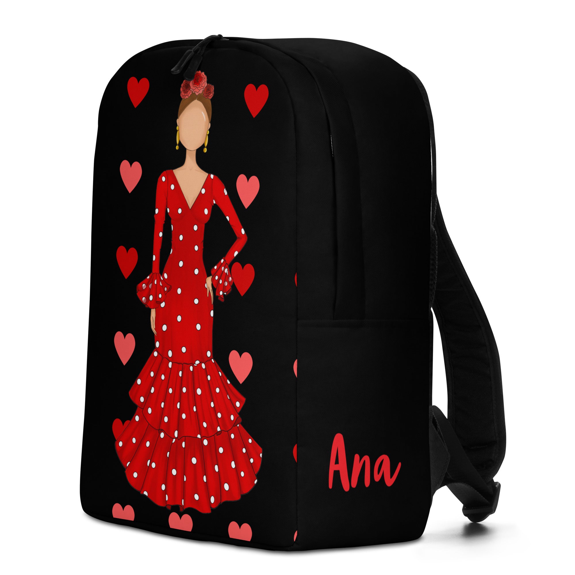 Para los apasionados del flamenco que buscan estilo y funcionalidad, esta mochila personalizable es ideal para llevar todas tus pertenencias con comodidad y seguridad. Su diseño incluye un amplio compartimento principal con espacio dedicado para un portátil de hasta 15 pulgadas, además de un bolsillo secreto para proteger tus artículos esenciales. Perfecta para el uso diario, esta mochila combina practicidad con un toque de arte flamenco único.