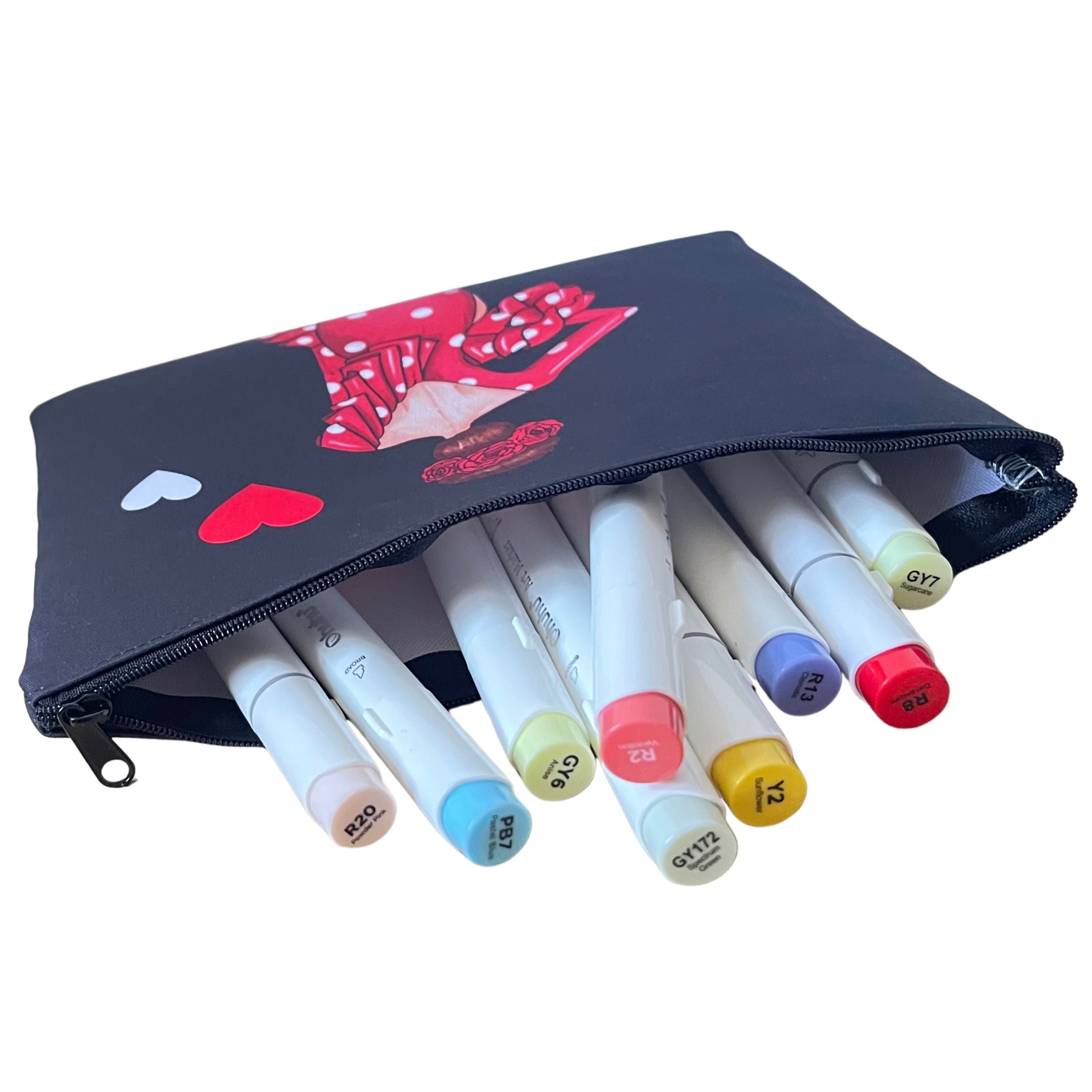 Neceser o Estuche Granada “Flamenca Macarena” – Diseño Doble Cara – Fondo Negro con corazones – 22x17 cm – Impermeable – Bolsa de Aseo, Maquillaje o Material Escolar
