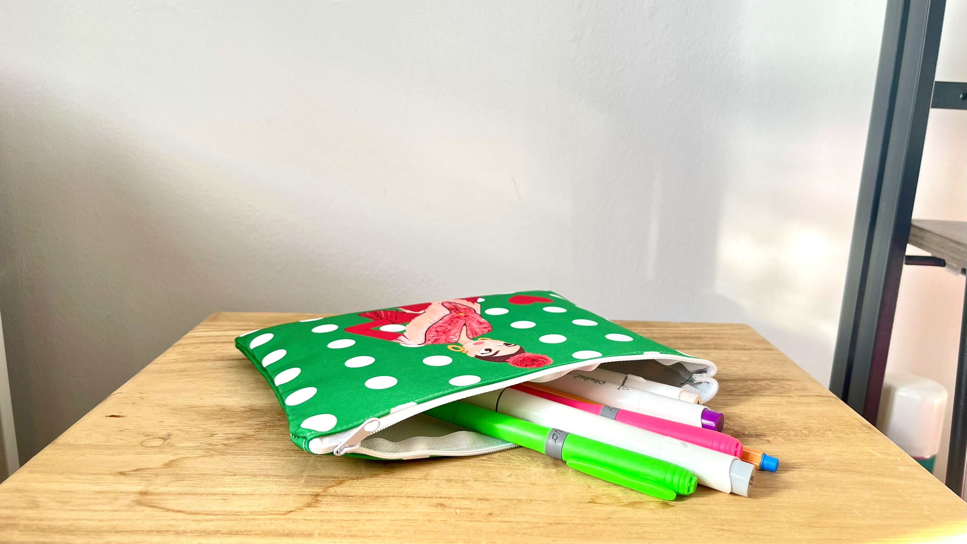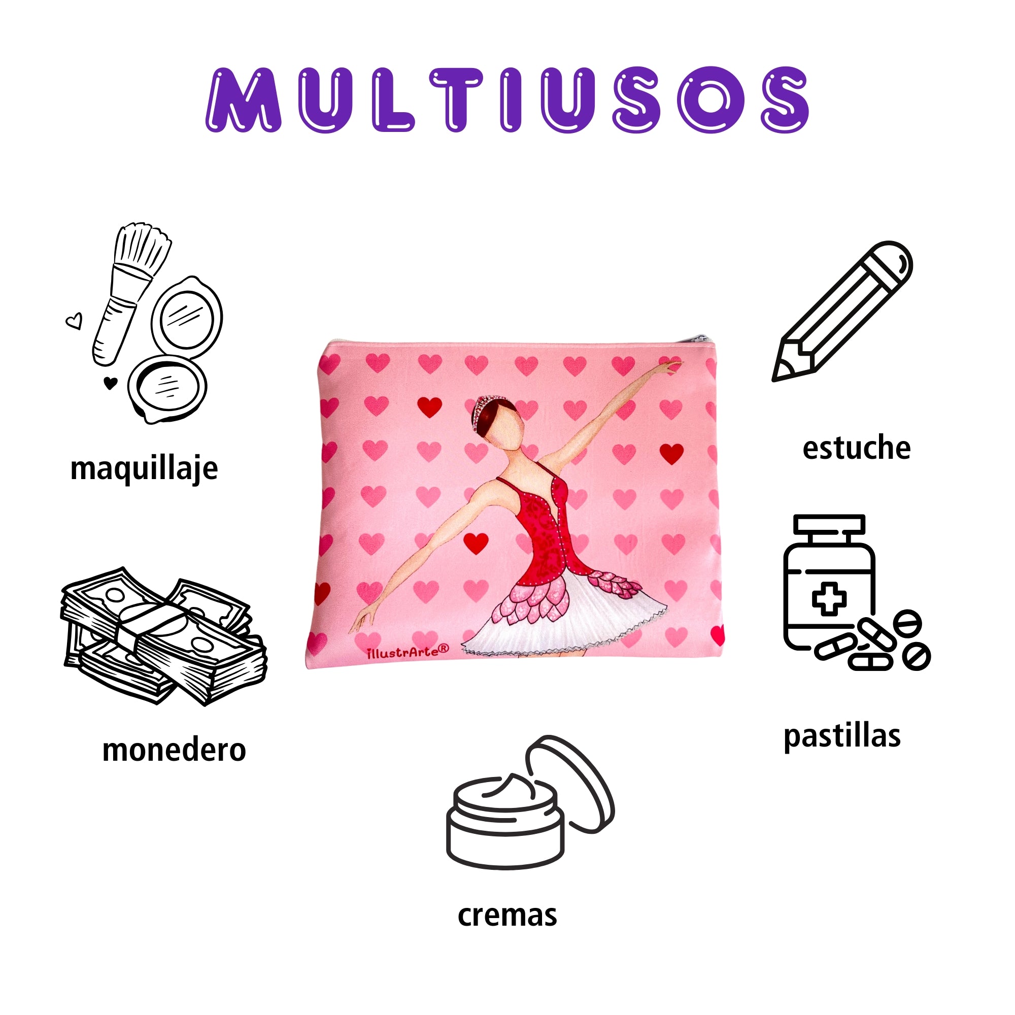 Neceser o Estuche Granada Bailarina “Mariela” – Diseño Doble Cara – Fondo Blanco con Lunares Negros – 22x17 cm – Impermeable – Bolsa de Aseo, Maquillaje o Material Escolar