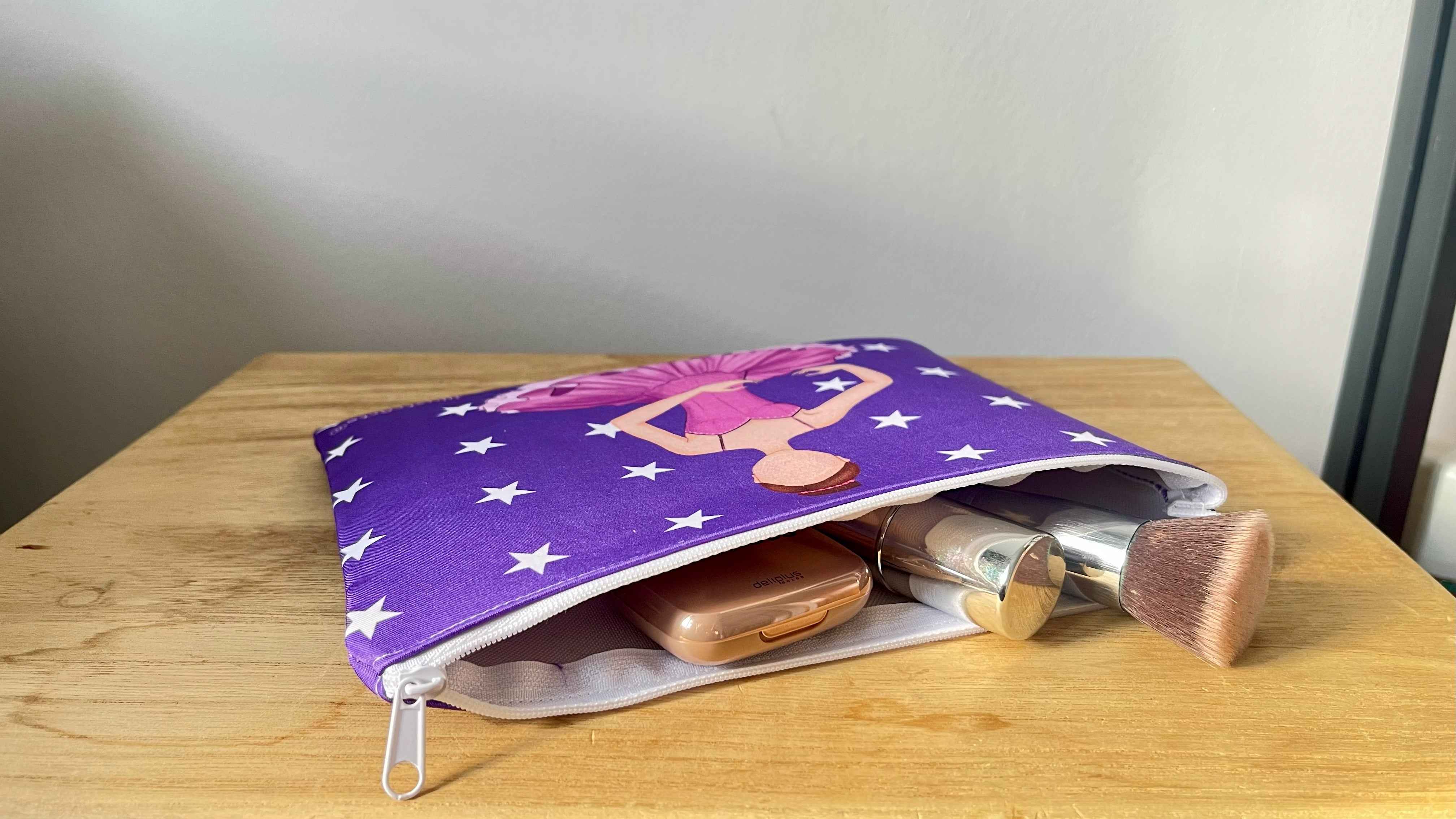 Neceser o Estuche Granada Bailarina “Sara” – Diseño Doble Cara – Fondo Blanco con Lunares Negros – 22x17 cm – Impermeable – Bolsa de Aseo, Maquillaje o Material