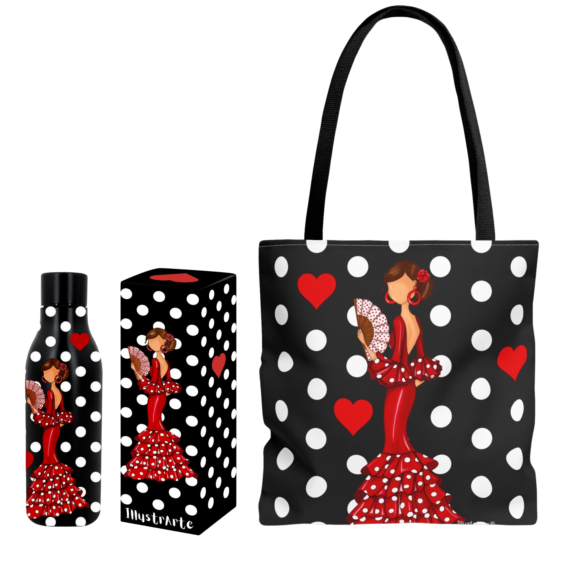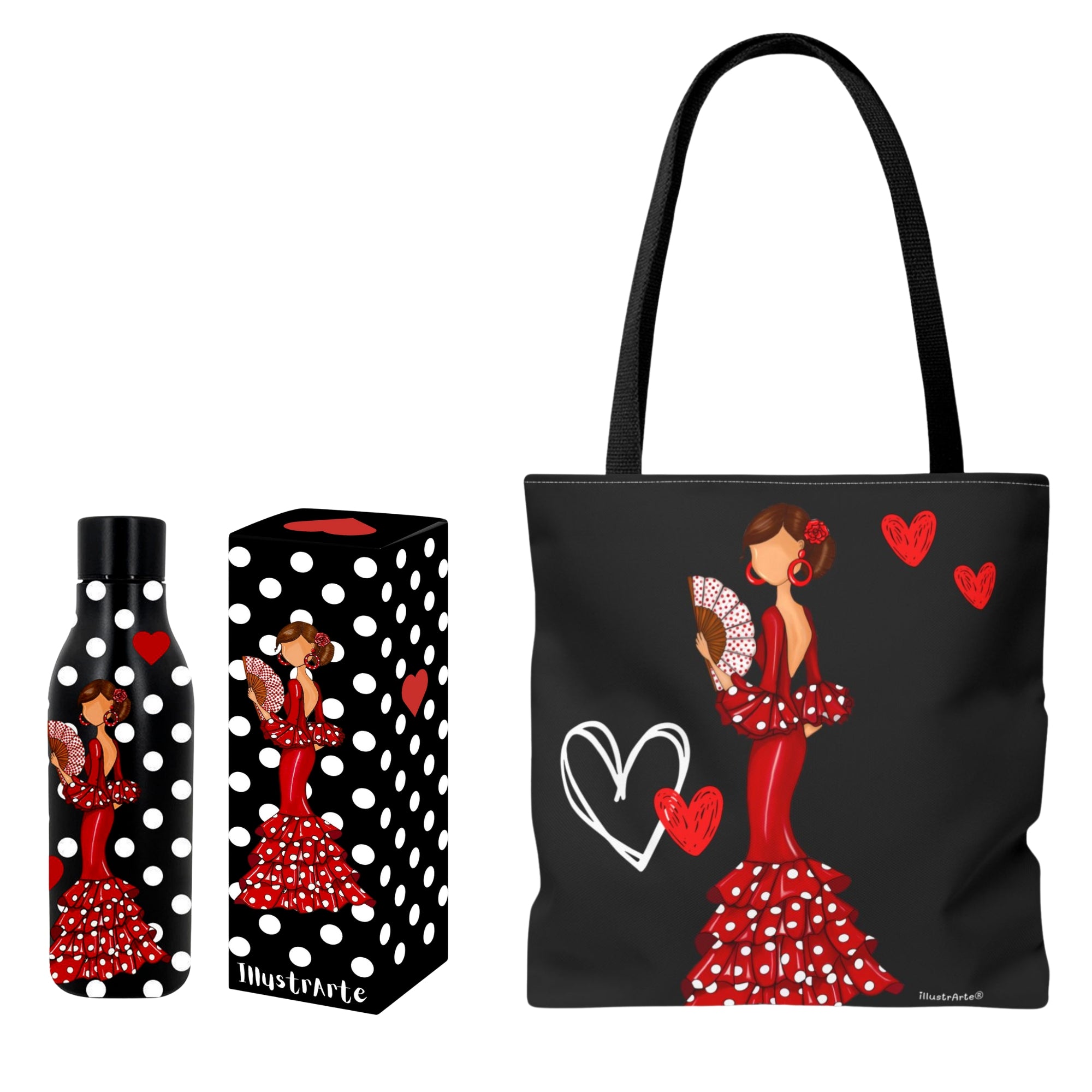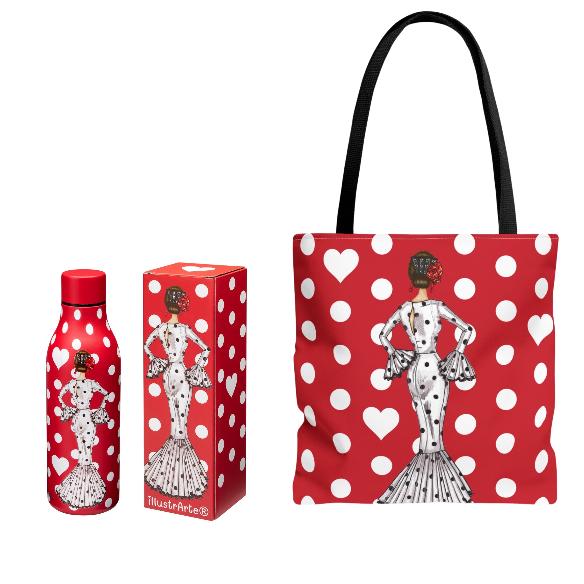 Pack Botella Térmica + Bolsa Tote Cádiz Flamenca | Diseño illustrArte