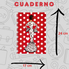 🔥3x2 Oferta – Libreta/Cuaderno Flamenca María – 100 Páginas Cuadriculadas – 17x24 cm – Tapa Semirrígida Roja con Lunares Blancos – Papel 80 g – Diseño Ilustrado con Corazones – Idea de Regalo Flamenco