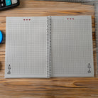 100 páginas cuadriculadas de 80 g/m² te ofrecen el soporte perfecto para escribir, dibujar o anotar tus ideas. Cada hoja está decorada con tres corazones rojos y la figura de María blanco, un detalle artístico que hace que cada página tenga vida propia.