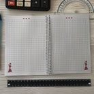 100 páginas cuadriculadas de 80 g/m² te ofrecen el soporte perfecto para escribir, dibujar o anotar tus ideas. Cada hoja está decorada con tres corazones rojos y la figura de Pepita, un detalle artístico que hace que cada página tenga vida propia.