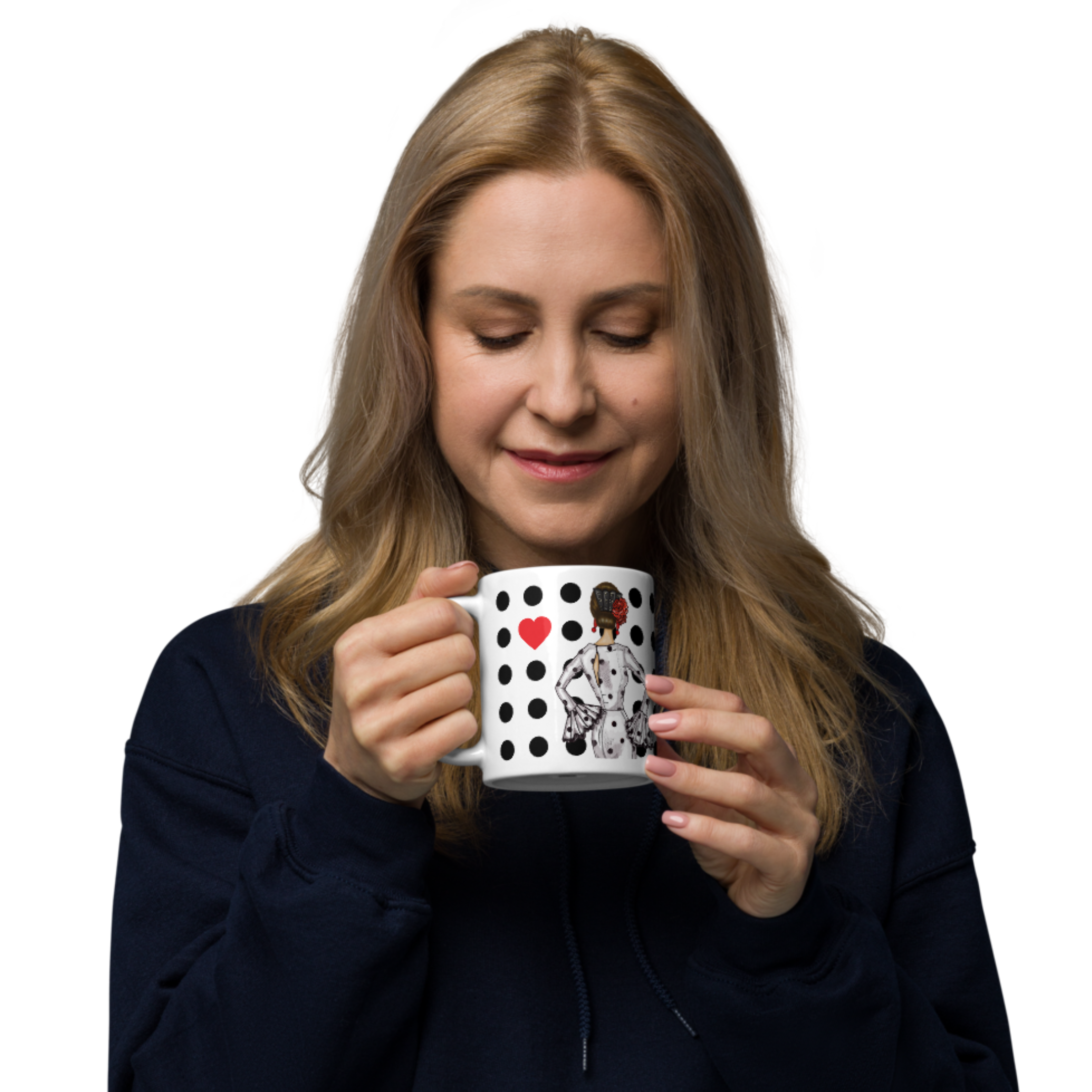 Taza de 350ml – Taza de Cerámica con Diseño de Bailarina de Flamenco – Regalo para Amantes del Baile – María blanco