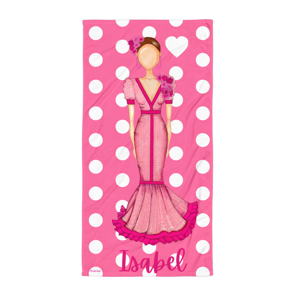 Toalla De Playa Personalizable - Modelo Flamenca Isabel con lunares blancos