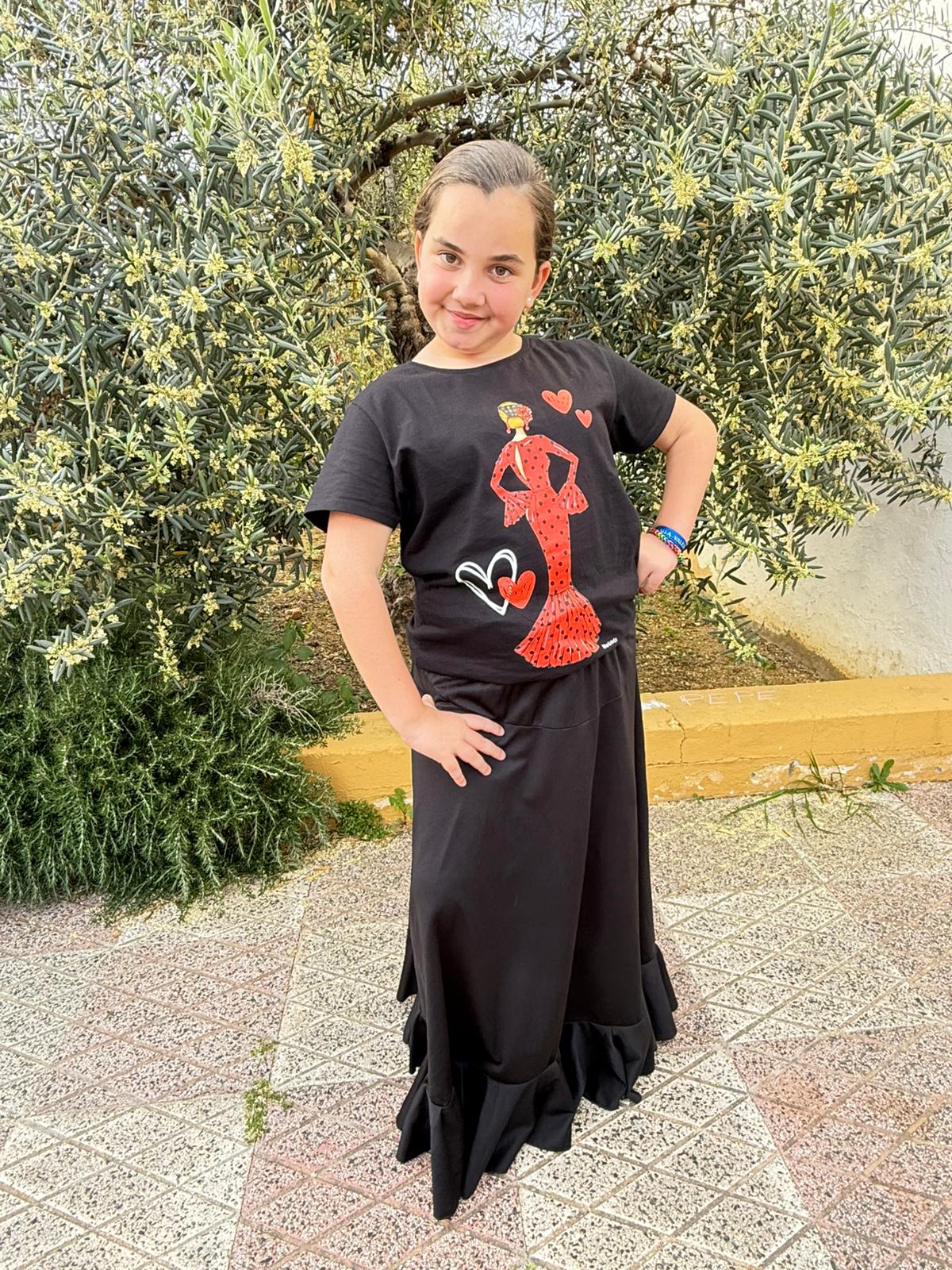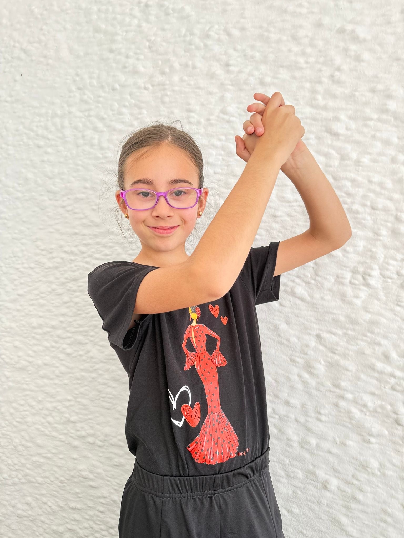 - Diseño Flamenco: Una camiseta que captura la esencia de la danza española, con un toque encantador y alegre para niñas.