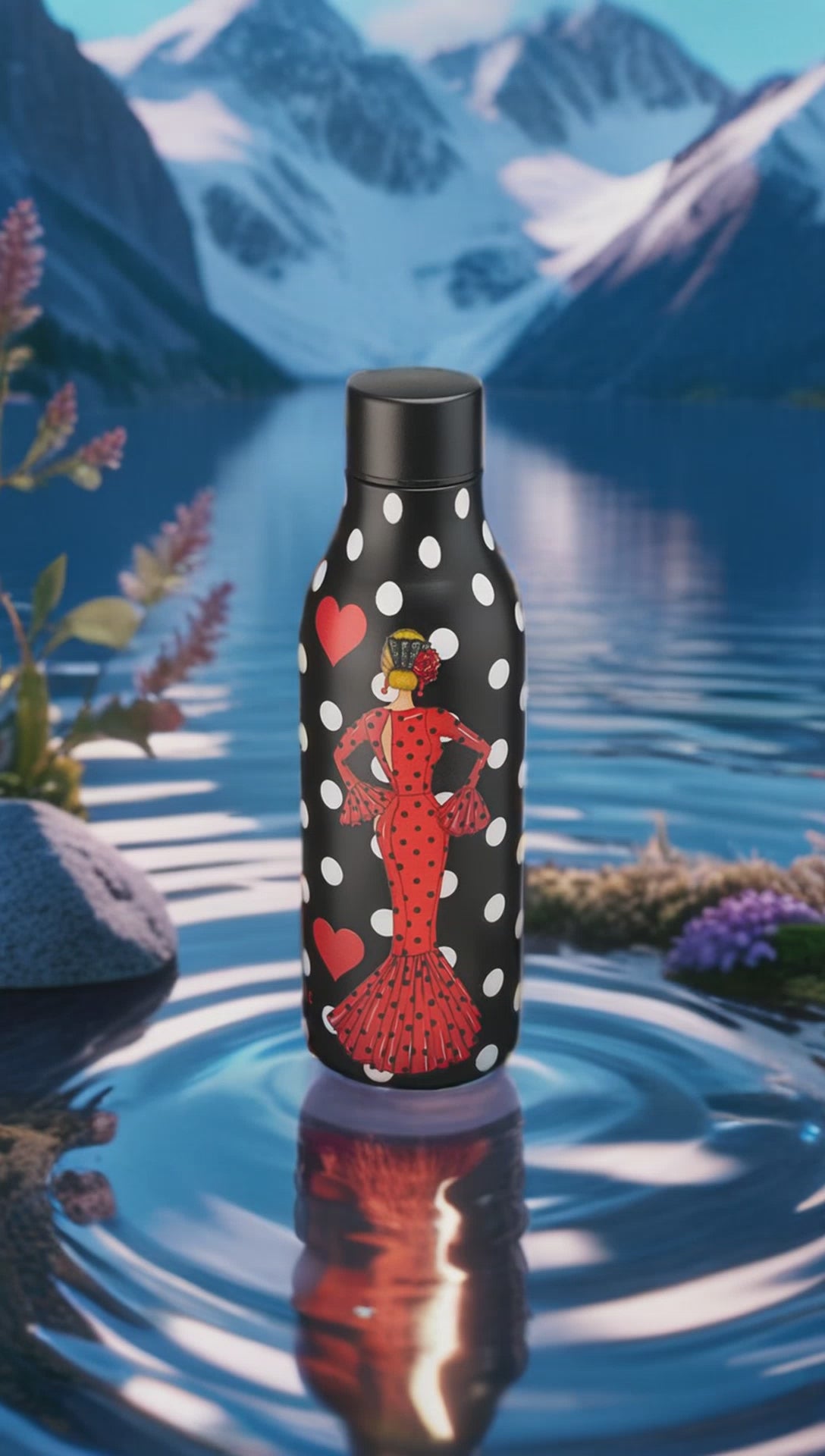 The “María Rojo” stainless steel bottle is a tribute to the strength, joy and elegance of the flamenco woman .