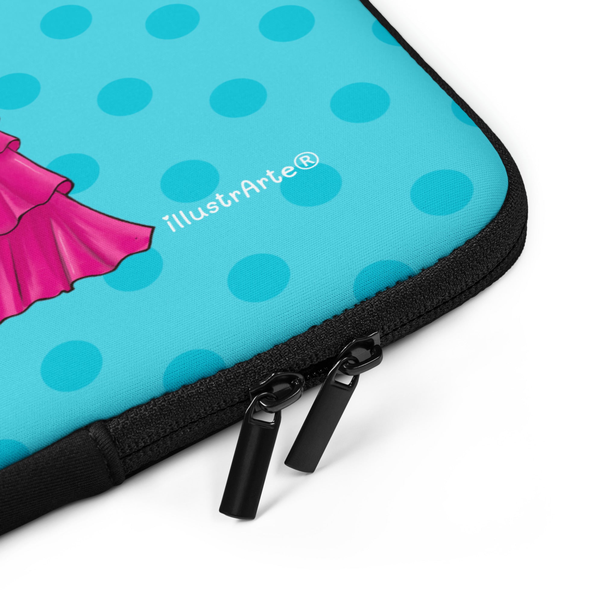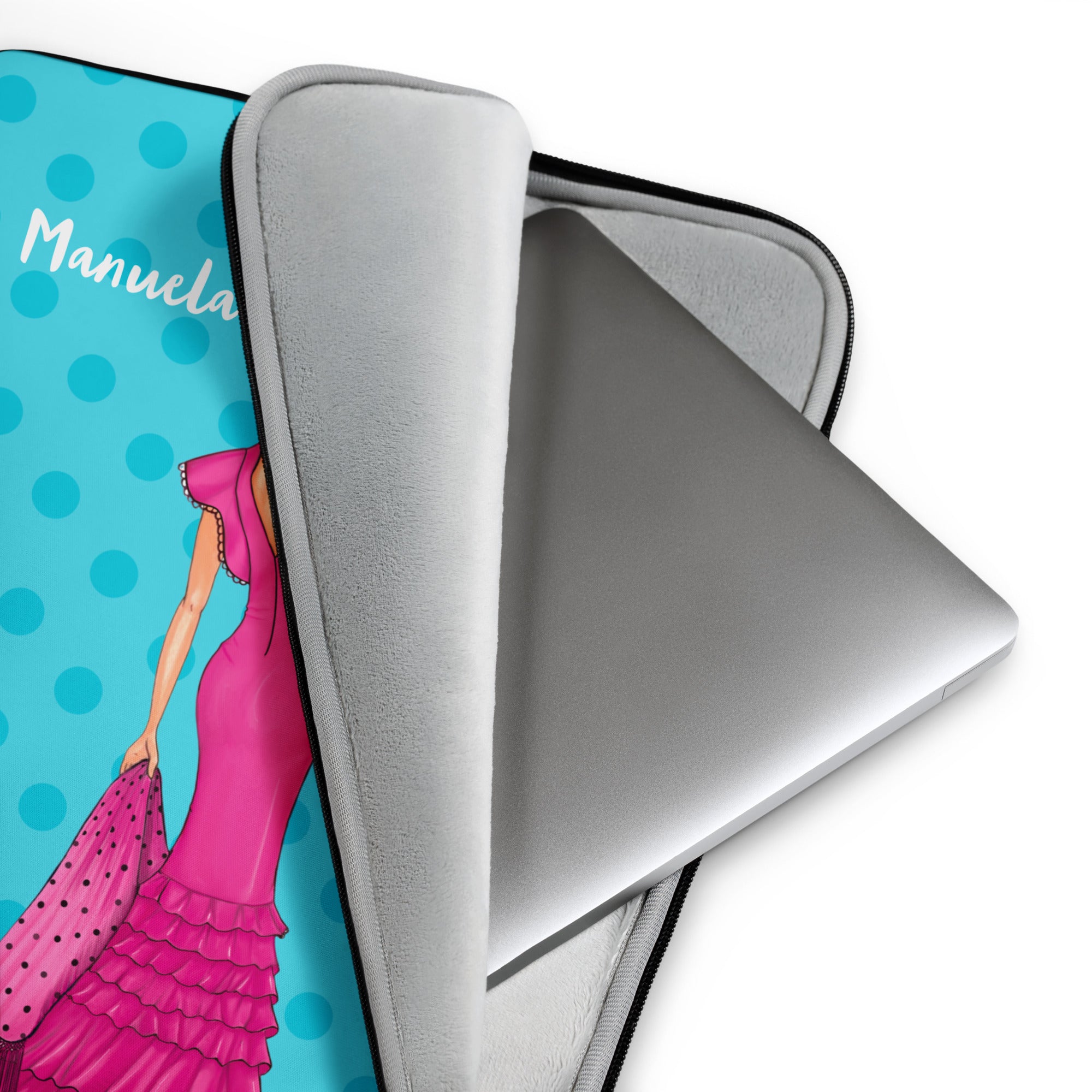 Customizable Laptop Sleeve - Flamenco Manuela turquoise background