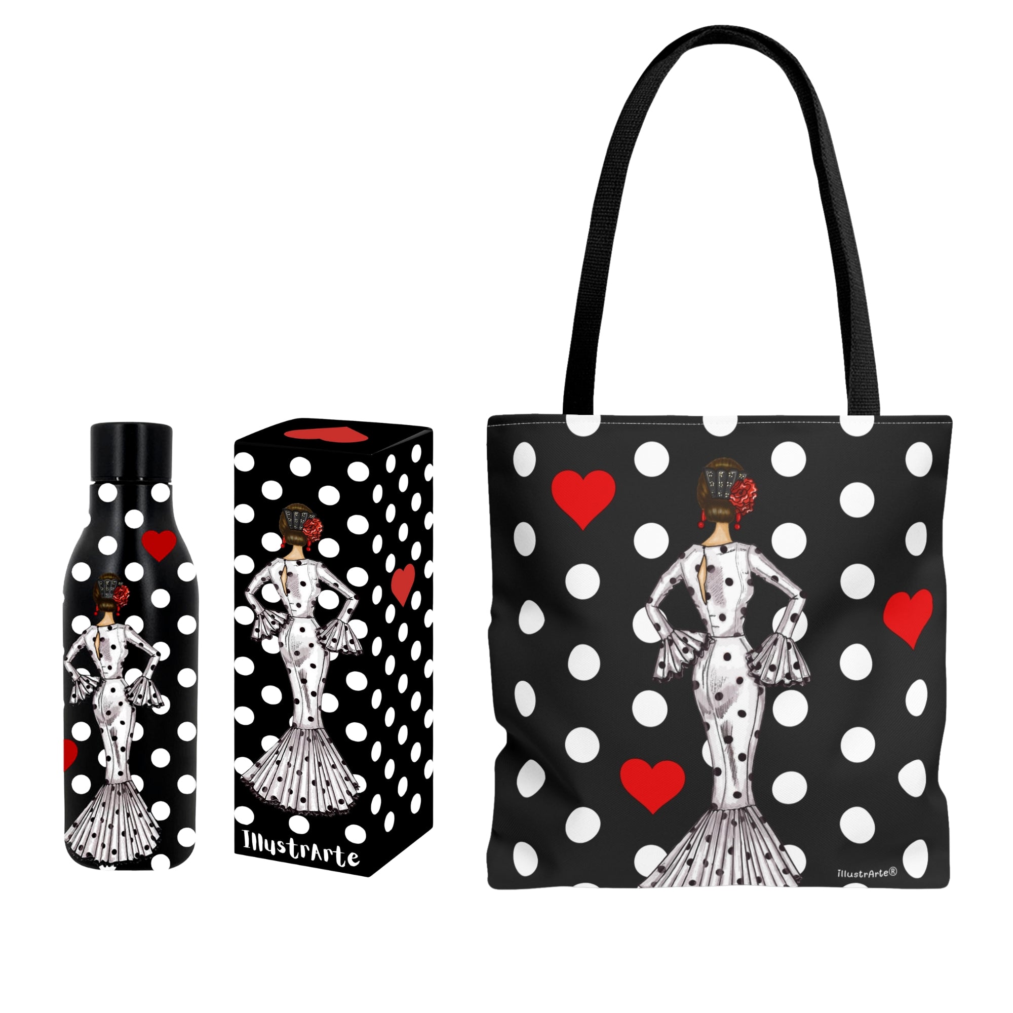 Pack Botella Térmica + Bolso Tote Málaga Flamenco | Diseño illustrArte | Idea de Regalo Original