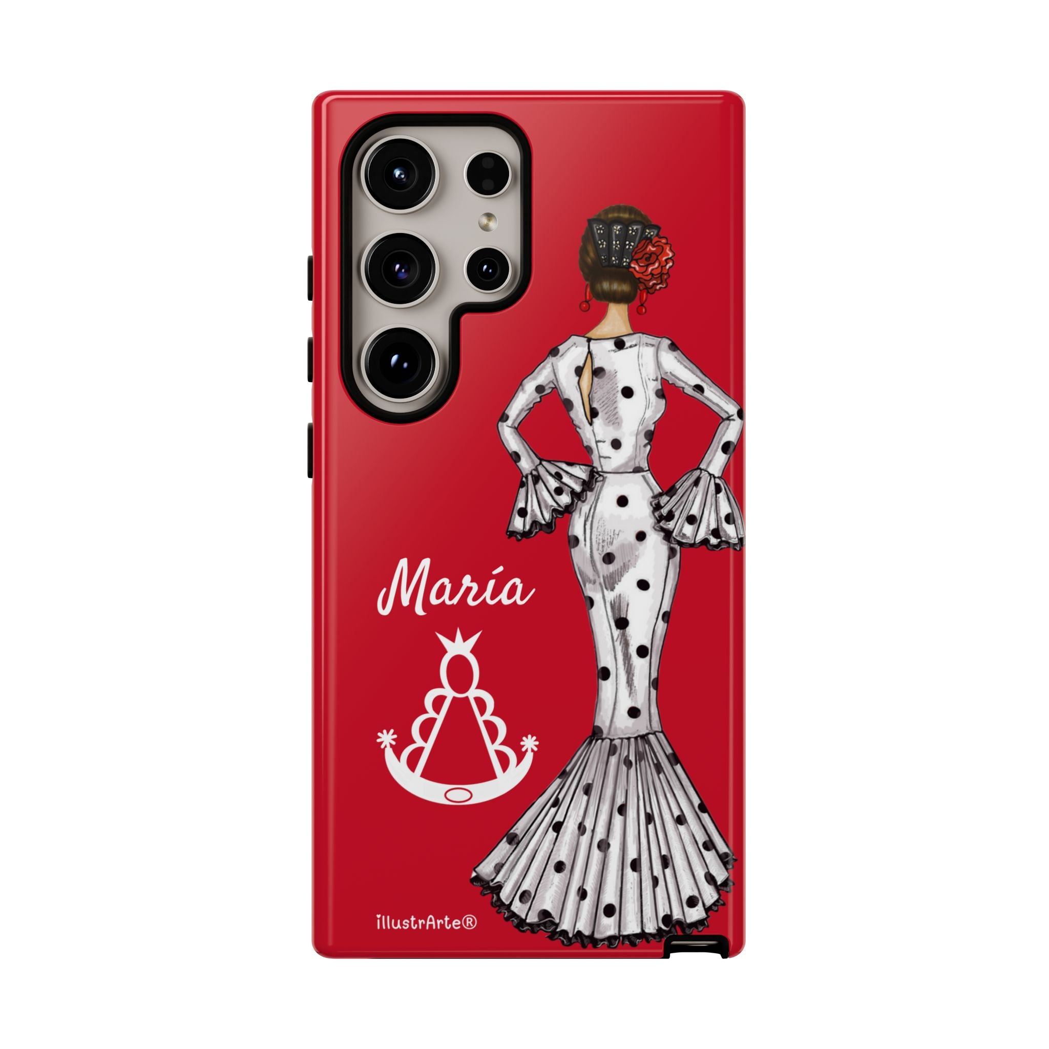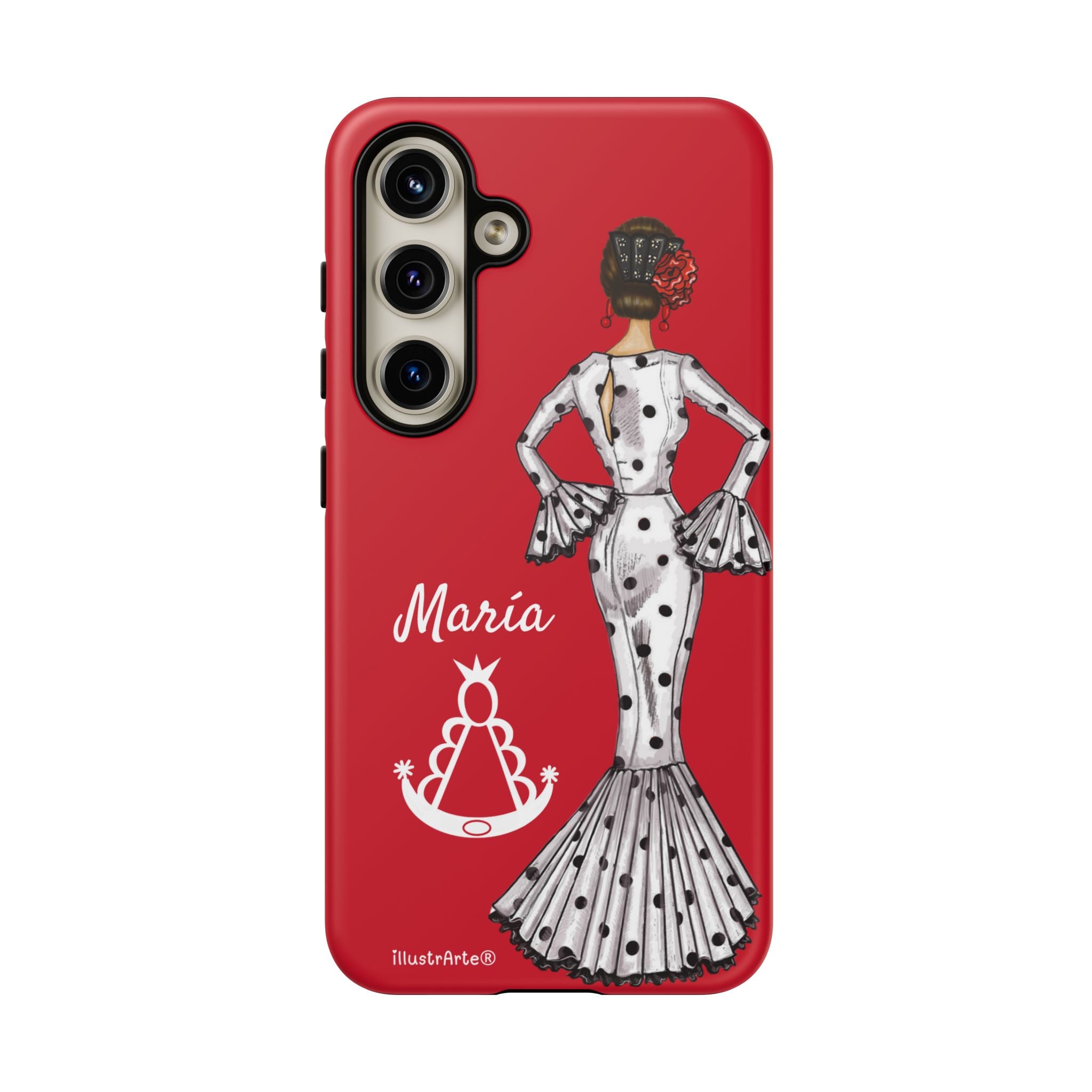 Transforme a aparência do seu dispositivo com nossa incrível capa de telefone personalizável , projetada para iPhone, Samsung Galaxy e Google Pixel. Apresentando a adorável flamenca María Blanco con Virgen del Rocío em seu elegante vestido, esta capa não só realça o seu estilo pessoal, mas também oferece proteção sólida e duradoura. Cada vez que você receber uma ligação ou mensagem, você sentirá que seu telefone reflete sua essência única.