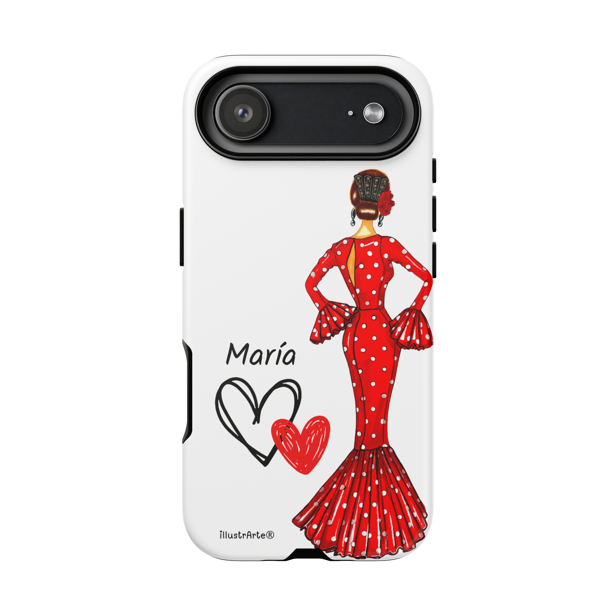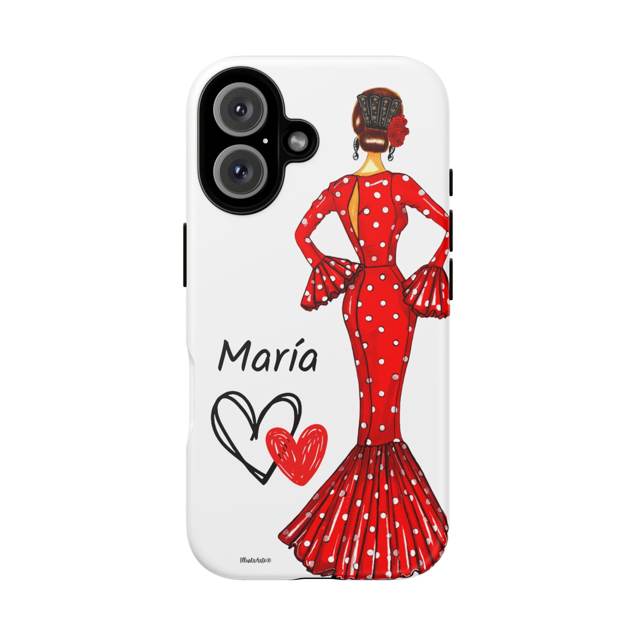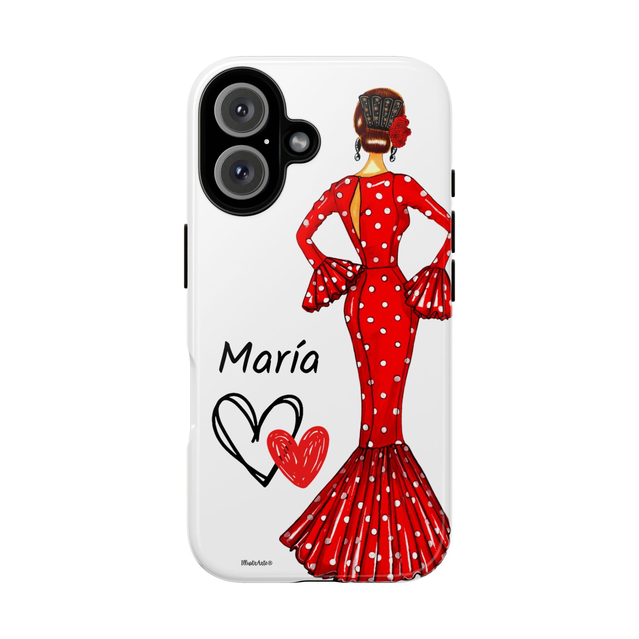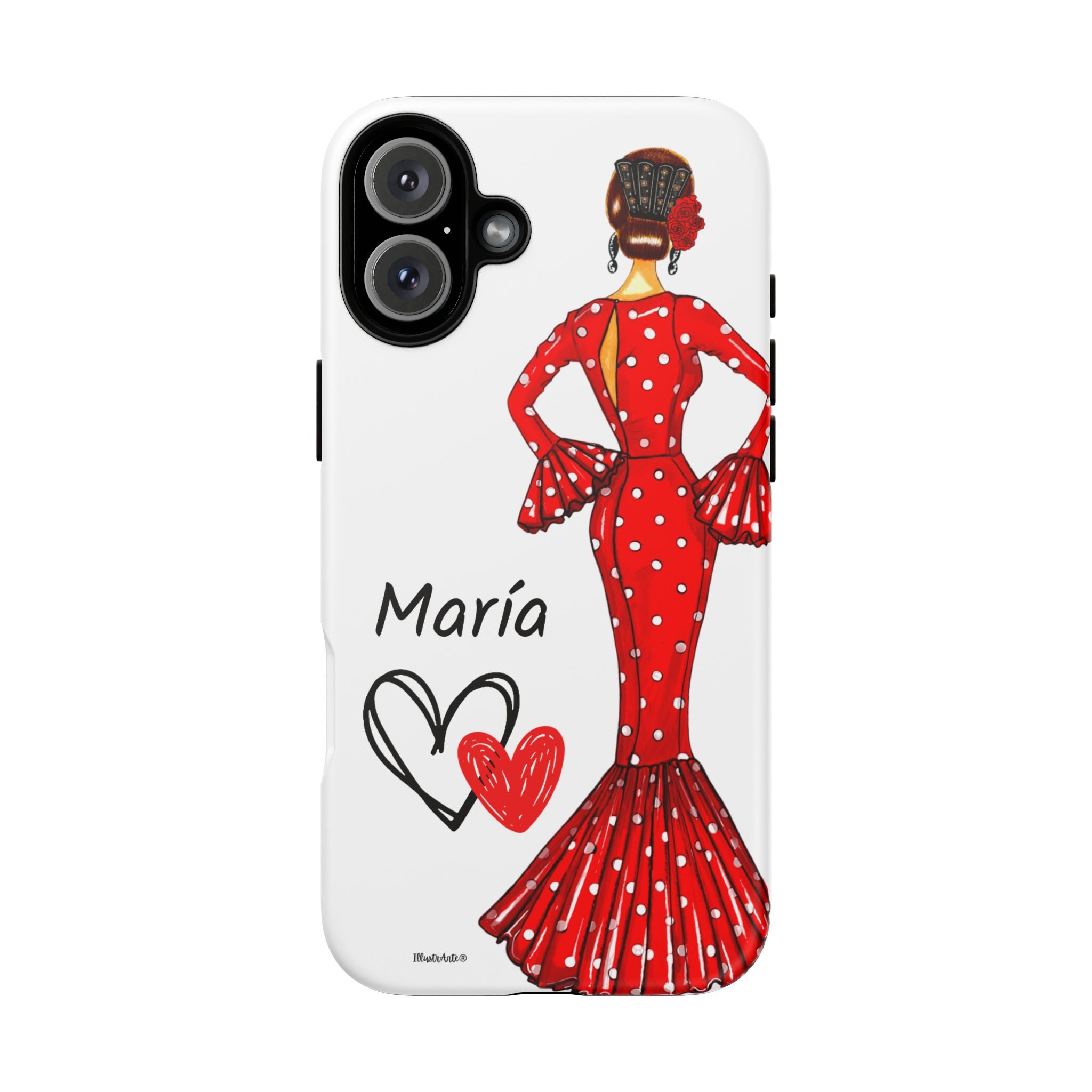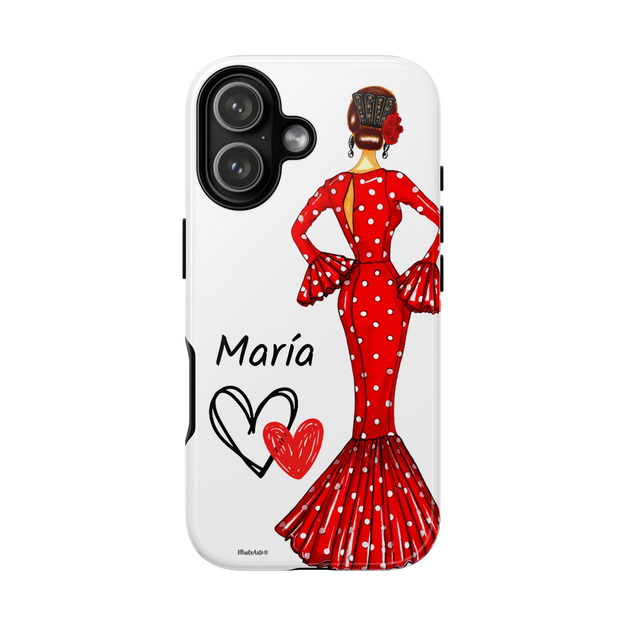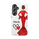 Transforme a aparência do seu dispositivo com nossa incrível capa de telefone personalizável , projetada para iPhone, Samsung Galaxy e Google Pixel. Apresentando a adorável flamenca Maria e seu elegante vestido vermelho, esta capa não só realça o seu estilo pessoal, mas também oferece proteção sólida e duradoura. Cada vez que você receber uma ligação ou mensagem, você sentirá que seu telefone reflete sua essência única.