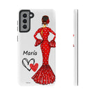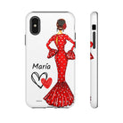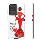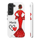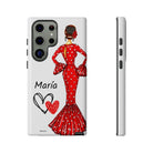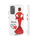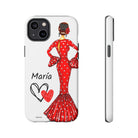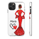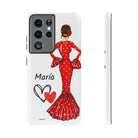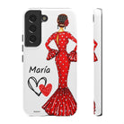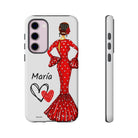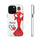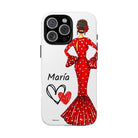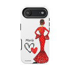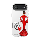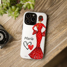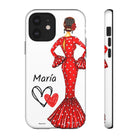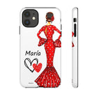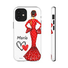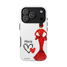 Capa de telefone personalizável com nome/bandeira/Virgem - modelo Maria em vestido vermelho Para iPhone, Samsung e Google Pixel