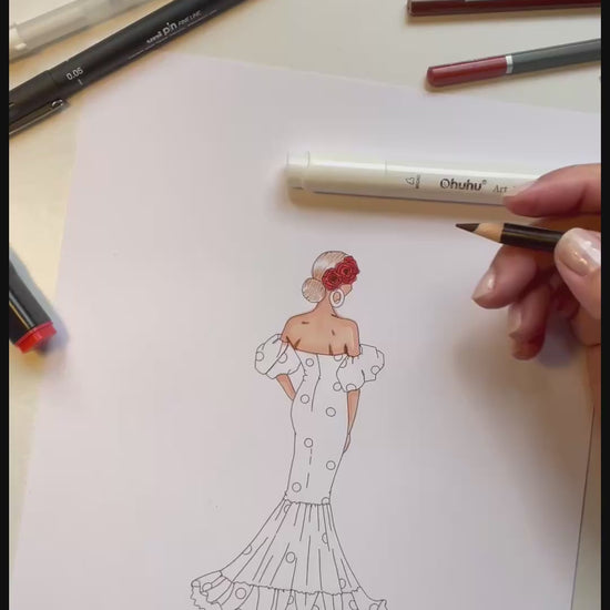 Toalla De Playa Personalizable - Modelo Flamenca María con vestido rojo