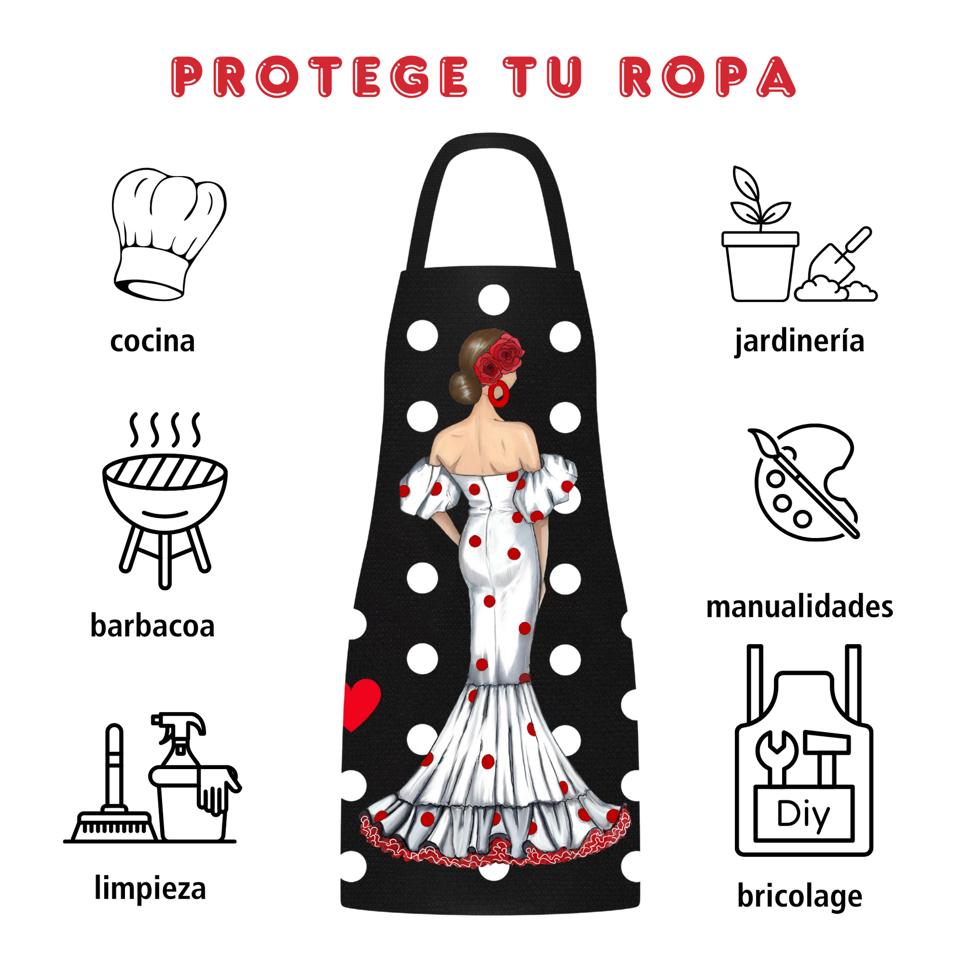 Pack Regalo Flamenca Maite – Neceser Granada “Maite” + Delantal “Maite” – Diseño Exclusivo illustrArte